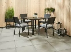 JUTLANDIA ELLEKILDE L180 Bord Teak + 4 BRAVA Stol Grå Snabbtorkande