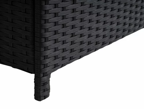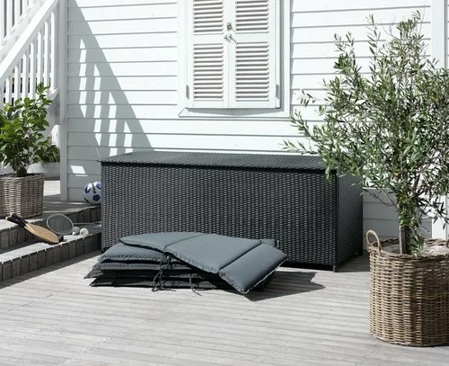 Stål, konstrotting och plast. Med praktiskt hydrauliskt lock. Frostsäker. B197 x H76 x D71 cm
