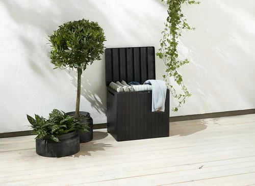 Vattentät, UV-skyddad plast. Frostsäker. B58 x H55 x D44 cm