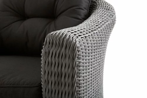 Aluminium och konstrotting. Inkl. exklusiva dynor med slitstarkt, strukturvävt överdrag. B89 x H79 x D86 cm