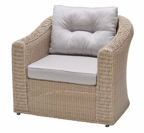 Aluminium och konstrotting. Inkl. exklusiva dynor med slitstarkt, strukturvävt överdrag. B89 x H79 x D86 cm