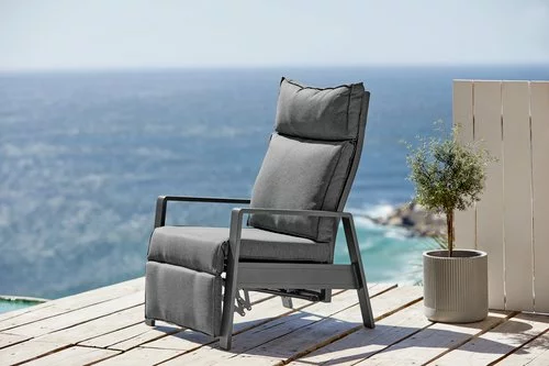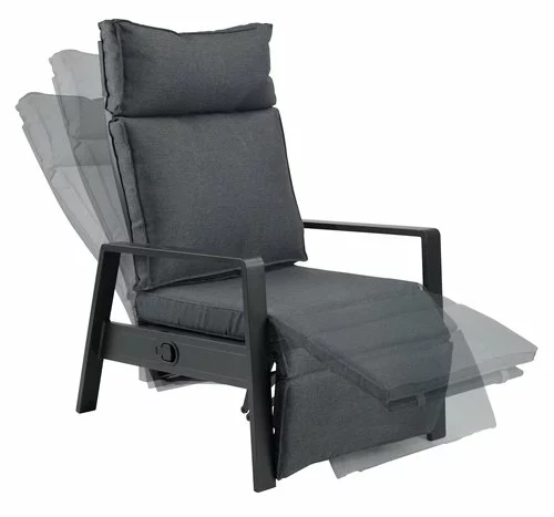 Aluminium och textilene. Steglös rygg- och benstödsjustering. Inkl. exklusiv dyna med slitstarkt, strukturvävt överdrag. B70 x H107 x D89 cm