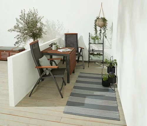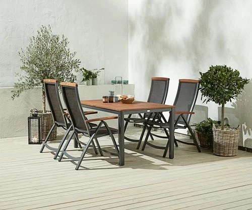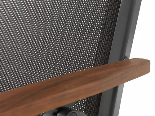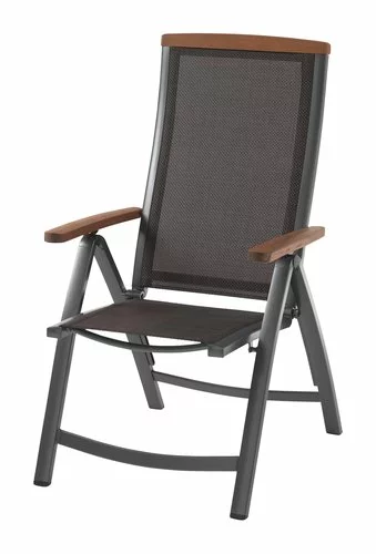 Aluminium, textilene och oljat FSC® hårdträ. 6 positioner. Hopfällbar.