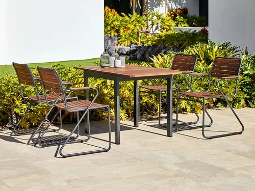 Aluminium och oljat FSC® hårdträ. Stapelbar.