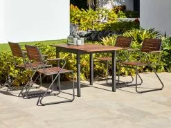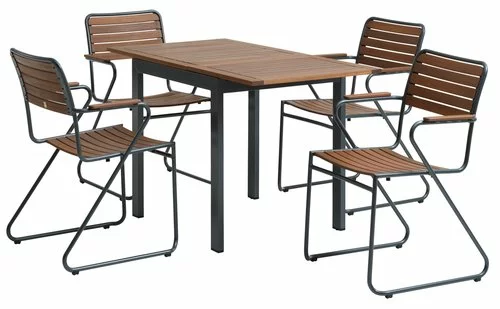 Bord: Aluminium och oljat FSC® hårdträ. Med 1 klaff. B70 x L75/126 x H75 cm. Stol: Aluminium och oljat FSC® hårdträ. Stapelbar.