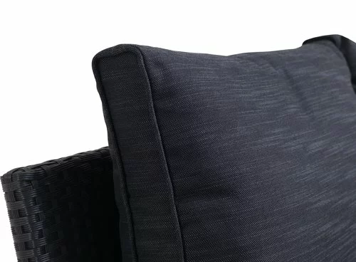 Bord: Stål, konstträ och konstrotting. B74 x L144 x H67 cm. 6-sits soffa: Stål och konstrotting. Kan ej spegelvändas. Inkl. exklusiva dynor med slitstarkt, strukturvävt överdrag.
