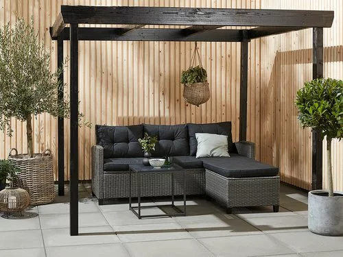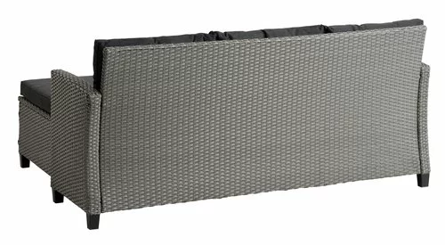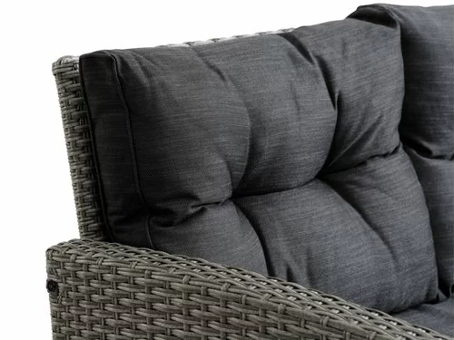 3-sits loungesoffa i stål och konstrotting. Kan spegelvändas. Inkl. exklusiva dynor med slitstarkt, strukturvävt överdrag. B170 x H76 x D67/142 cm