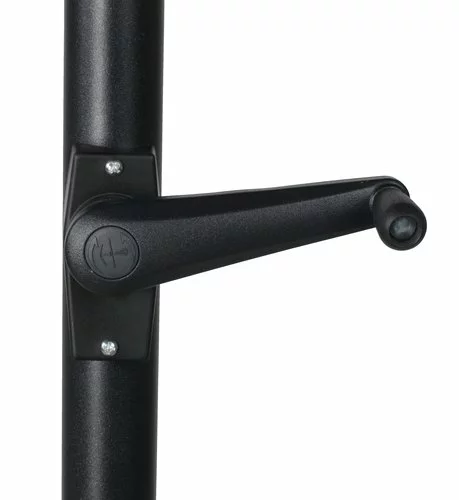 Vattentålig, UV-skyddad polyesterduk och stålstång. Med handvev och ventilation. Ø250 x H235 cm