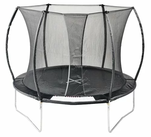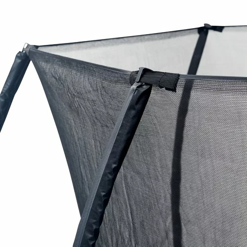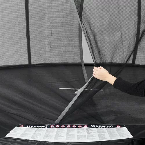 | Studsmatta funktioner | Säkerhetsnät H182 cm, Överlappande, självstängande ingång, 1,7 cm tjock UV-beständig kantdyna med skumkärna och slitstarkt gummiöverdrag, Stänger med skumstoppning och slitstarkt gummiöverdrag, 60 galvaniserade stålfjädrar, Galvaniserad stålram, Väderbeständig hoppmatta |